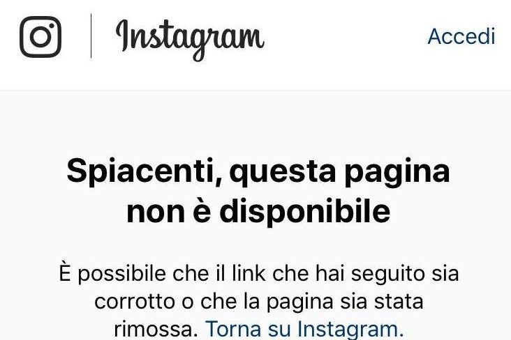 Ecco la foto della pagina non trovata del profilo Instagram: