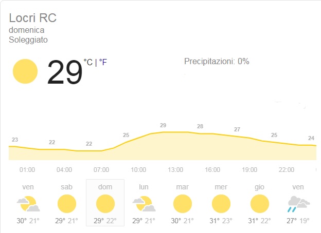 Previsioni meteo per domenica pomeriggio a Locri.