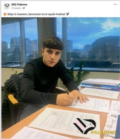 Andrea Silipo è ufficialmente giocatore del Palermo, a comunicarlo è la pagina ufficiale Facebook del SSD Palermo. Sembra così conclusa la ricerca del vice-Felici con l’arrivo del fantasista scuola Roma.