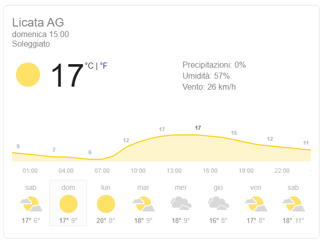 Previsioni del tempo sulla città di Licata per domenica 23 febbraio 2020