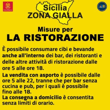 Da lunedì la Sicilia sarà finalmente zona gialla. Dopo due settimane di zona rossa ed altre due di zona arancione si avrà un allentamento delle misure di restrizione. Grande attesa in particolare per la riapertura di bar e ristoranti, che potranno effettuare servizio al tavolo fino alle 18.00. Di seguito tutte le indicazioni su cosa sarà possibile fare da domani in base alle infografiche realizzate dalla Protezione Civile.