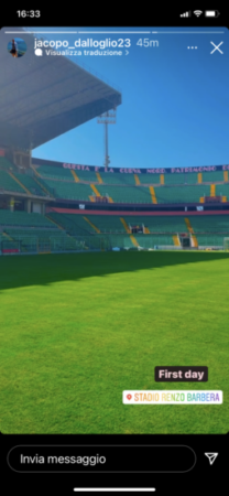 Jacopo Dall’Oglio è ufficialmente un nuovo giocatore del Palermo. Il centrocampista ex Catania – che ha rescisso questa settimana con gli etnei – ha firmato con i rosa un contratto annuale. Primo giorno di allenamento quest’oggi al “Renzo Barbera” per il nuovo innesto, che ha immortalato sui social network con entusiasmo le prime emozioni sul campo. Occhi puntati sulla curva Nord. Probabilmente il giocatore non vede l’ora di sentire il calore della piazza dal terreno di gioco.