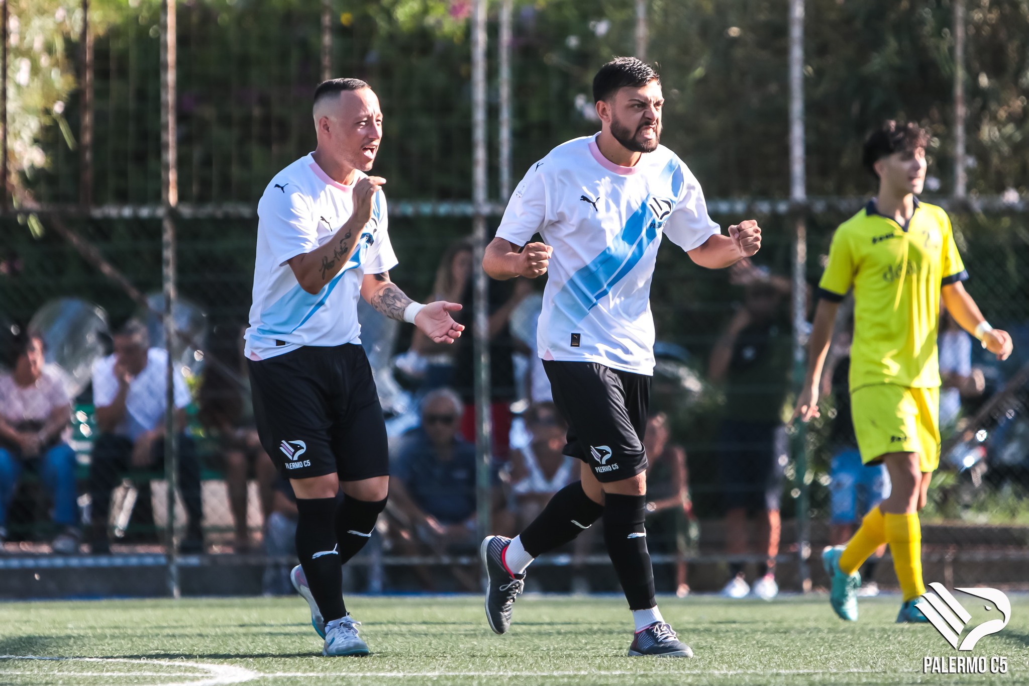 Il Palermo C5 inizia il match col piede pigiato a martello sull’acceleratore trovando due gol, in rapida successione, nei primi 5′ di gioco: 0-1 siglato da Bonanno su assist di Musso, 0-2, invece, segnato da Musso al termine di una giocata da urlo (elastico per eludere la marcatura di un avversario seguito da un dribbling secco al portiere prima di depositare il pallone in rete).