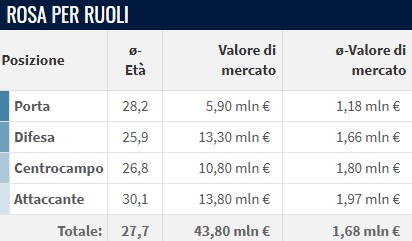 In particolare, è proprio l’attacco a destare maggiore attenzione con un’età media ormai sopra i 30 anni, un dato che evidenzia come il reparto offensivo rosanero sia composto da giocatori esperti ma anche più difficili da gestire fisicamente durante un’intera stagione.