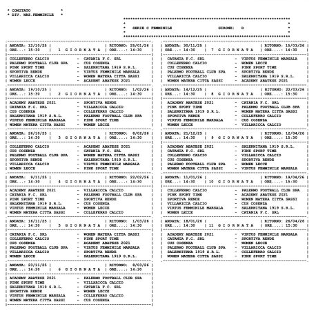 Per quanto riguarda gli orari di gara si comincerà a giocare alle ore 15.30 per le prime due giornate, successivamente le 48 formazioni che compongono il roster del campionato Serie C giocheranno alle 14.30 per poi ritornare alle 15.30 dall’ 8ª all’11ª giornata. Tutte le protagoniste si affronteranno lungo una stagione sportiva composta da ventidue giornate”.