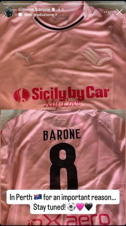 Barone ha stuzzicato la fantasia dei fan pubblicando una foto che ritrae la maglia del Palermo, accompagnata da una didascalia carica di aspettativa: “A Perth per un motivo importante. Restate sintonizzati”.