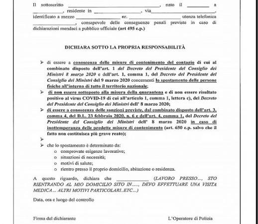 Vi presentiamo la nuova domanda di autocertificazione per gli spostamenti. Rispetto alla precedente viene aggiunta la dizione di non essere...